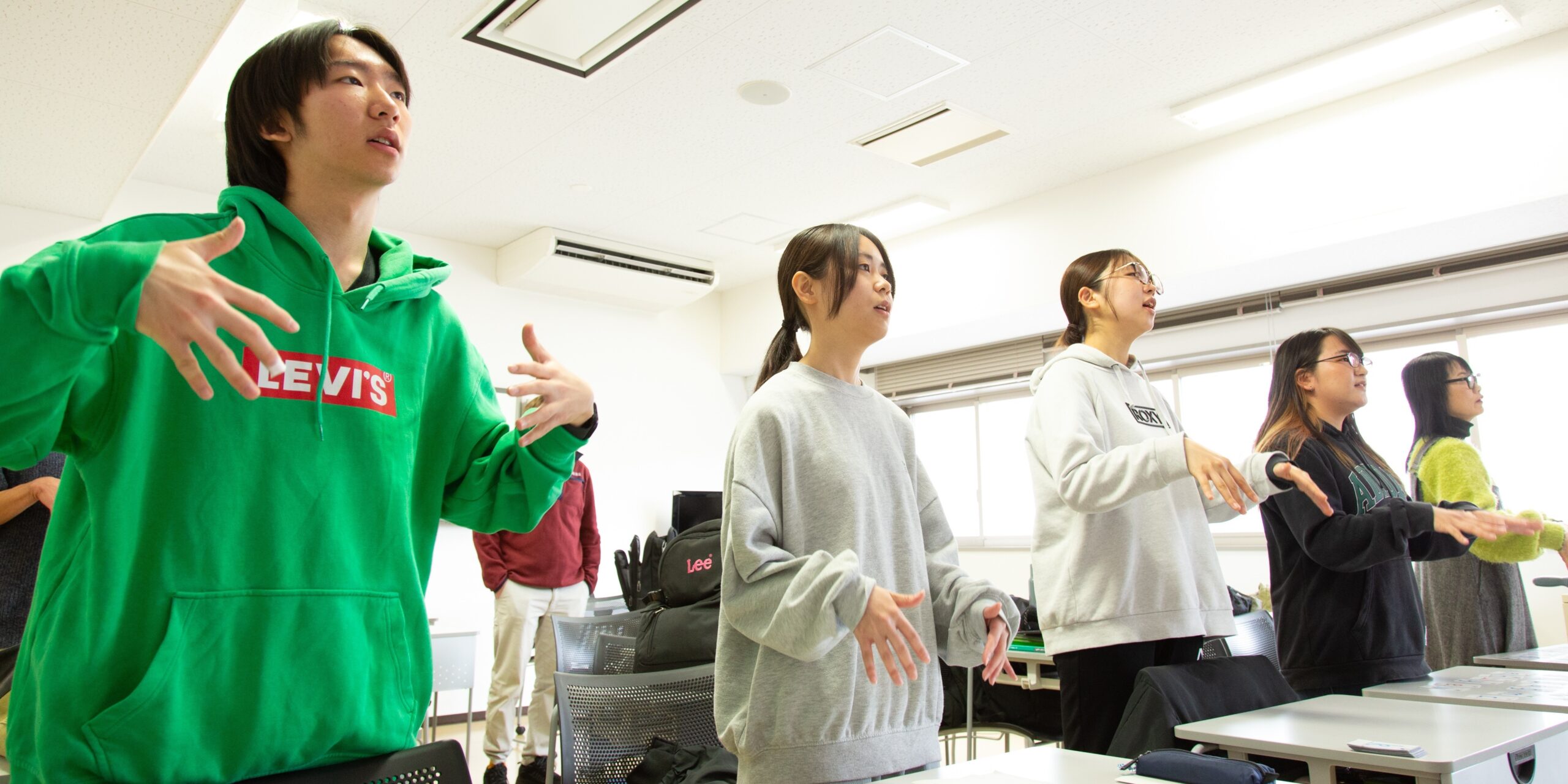 全ての学年に“実習”授業があります。また、課外活動を含め豊富な教育“現場”活動があります。実際の教育現場での体験を通して、教職・学校・子どもの理解と、実践的指導力・授業力を身につけていきます。