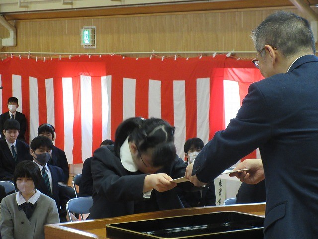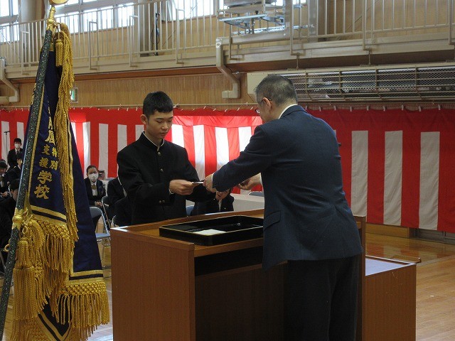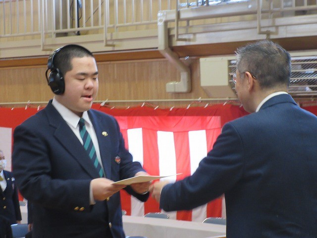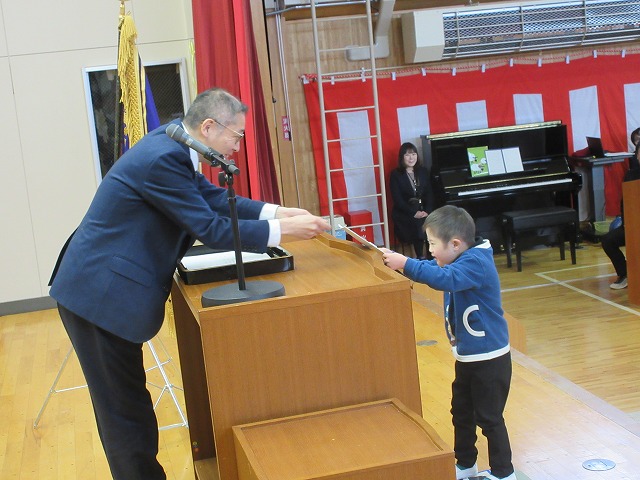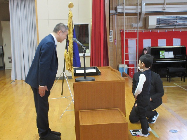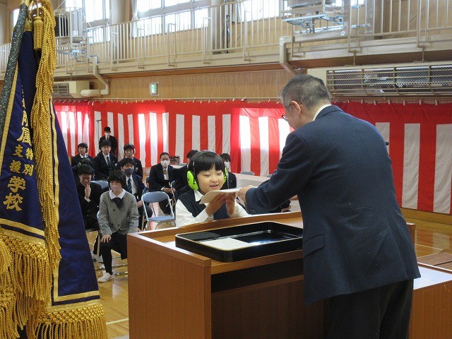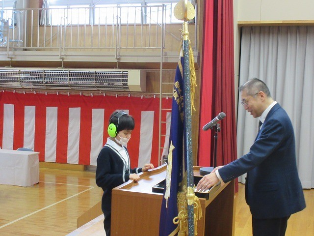 式では、各学年の代表者が修了証書を受け取りました。練習の成果がよく出ており、校長先生から立派に証書を受け取ることができました。