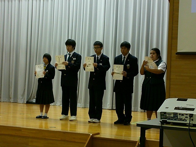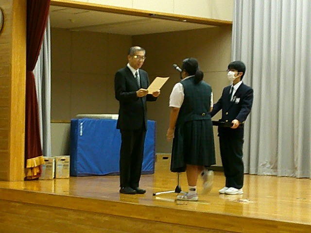 どの生徒も嬉しそうに賞状を受け取り、全校児童生徒に披露してくれました。