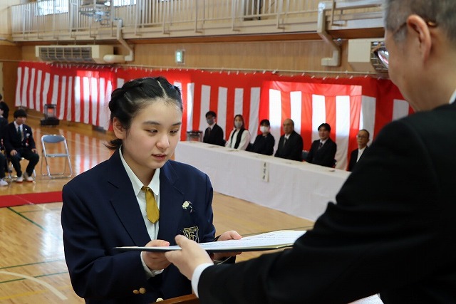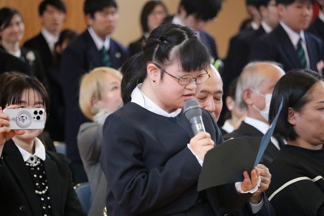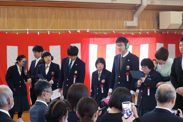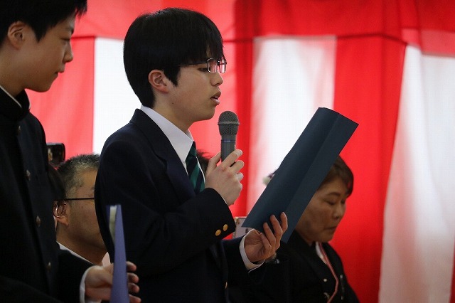 在校生が述べる卒業生への感謝のことばには先輩への感謝と尊敬の気持ちが表れており、良い時間を共に過ごし学習してきたことがよく分かりました。