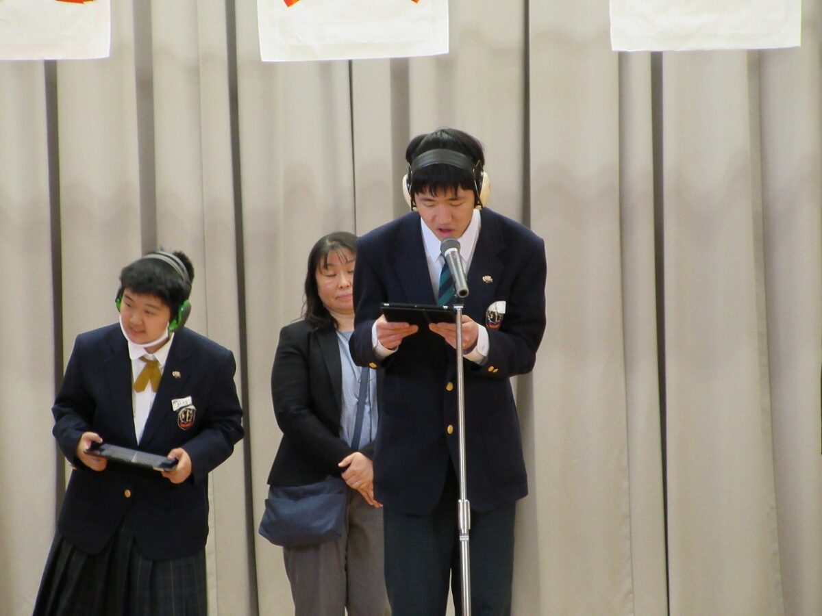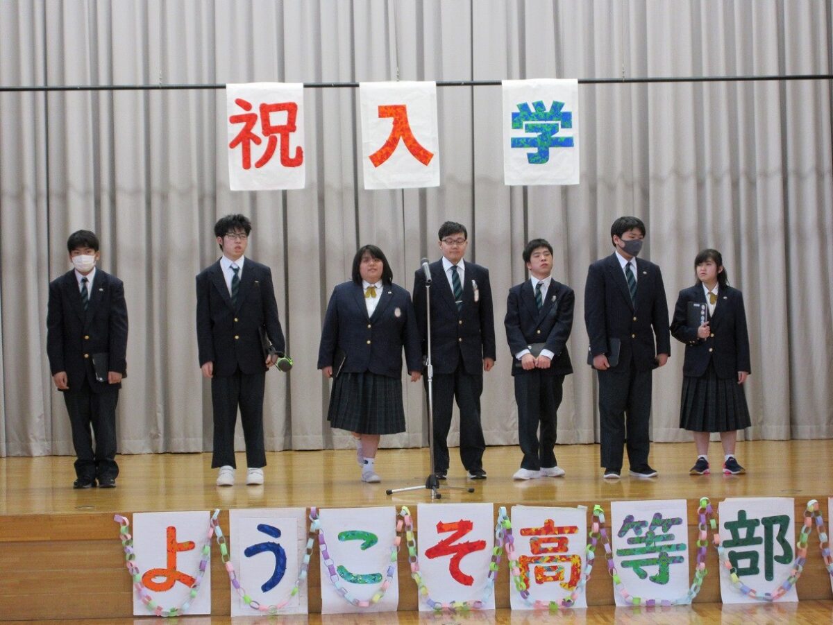 4月14日(火)に新入生と在校生の対面の場として、歓迎会が盛大に行われました。校長先生や生徒会長からお祝いや歓迎の言葉があり、新入生のみんなが高等部入学を実感している様子でした。そのあとは、一人一人自己紹介をしたり、カラオケ・ダンスなどの出し物をしたりして、とても盛り上がりました。歓迎会を通して、お互いを知る機会ができ、これから高等部の仲間として生活を共にする気持ちを高めることができました。
