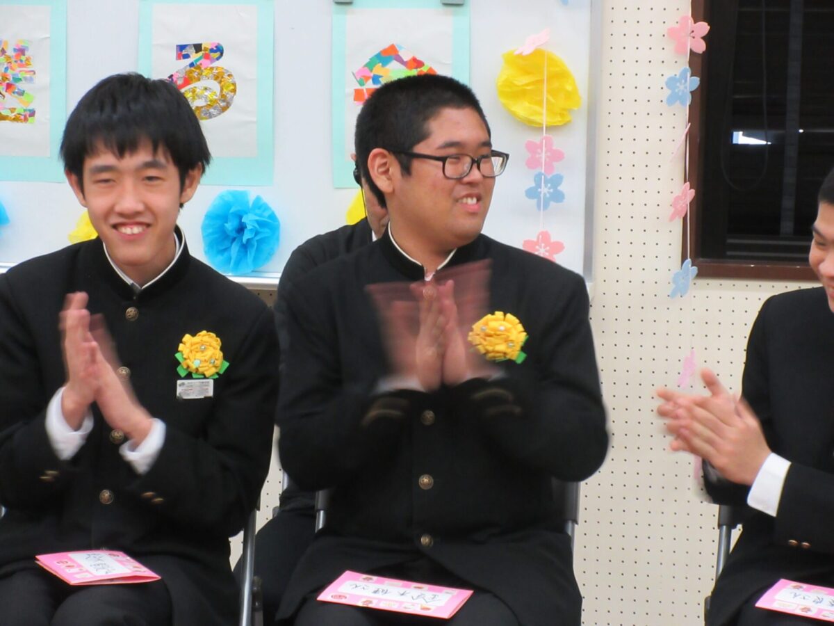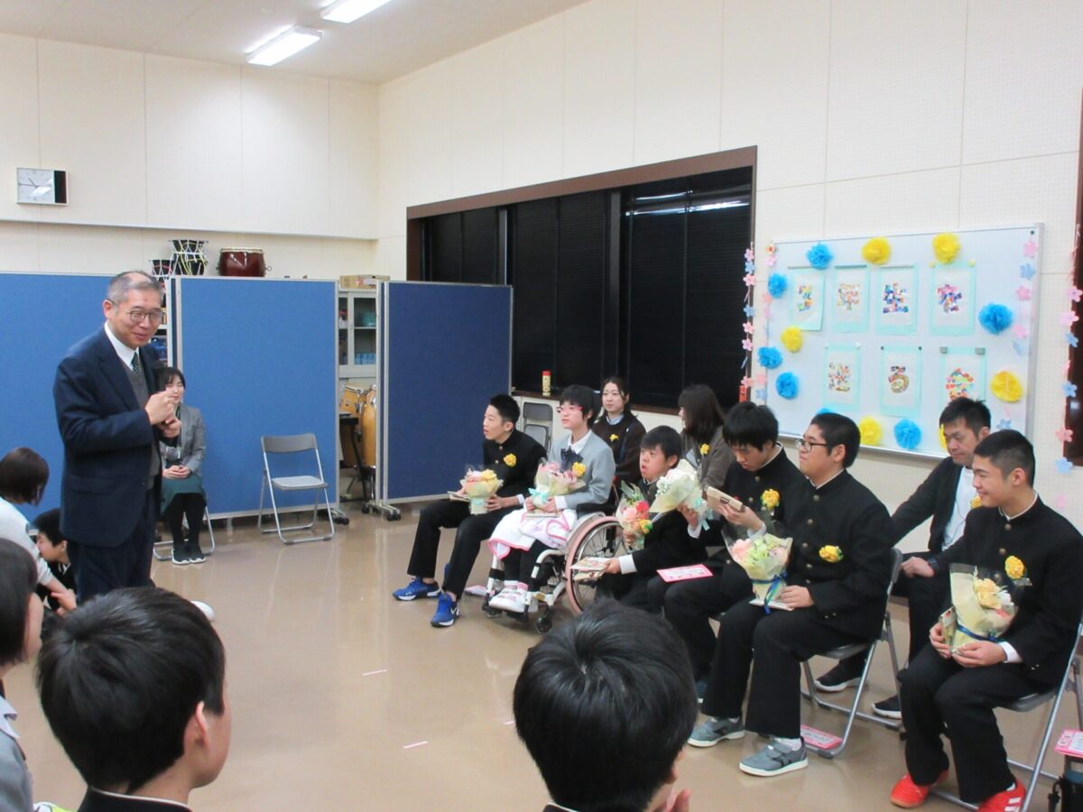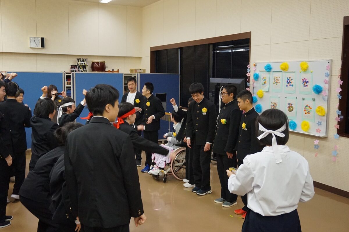 2月27日(金)、音楽室にて「3年生を送る会」を行いました。これまで、中学部を引っ張ってきてくれた3年生へ、在校生は心をこめて準備をしてきました。会の始まりには、全員でダンスを踊りました。3年生と踊ってきたダンス。思い入れのあるダンスソングで、なんと3曲も踊りました。また、在校生からは、3年生への感謝の気持ちを込めたフラワーアレンジメントやプレゼント、エールが贈られました。3年生からも後輩の背中を押してくれるような力強いエールとメッセージ、卒業記念品(リサイクルBOX)をいただきました。みんなの想いに、会場にいると胸が熱くなる場面もありました。本当にあたたかい、素晴らしい会となりました。