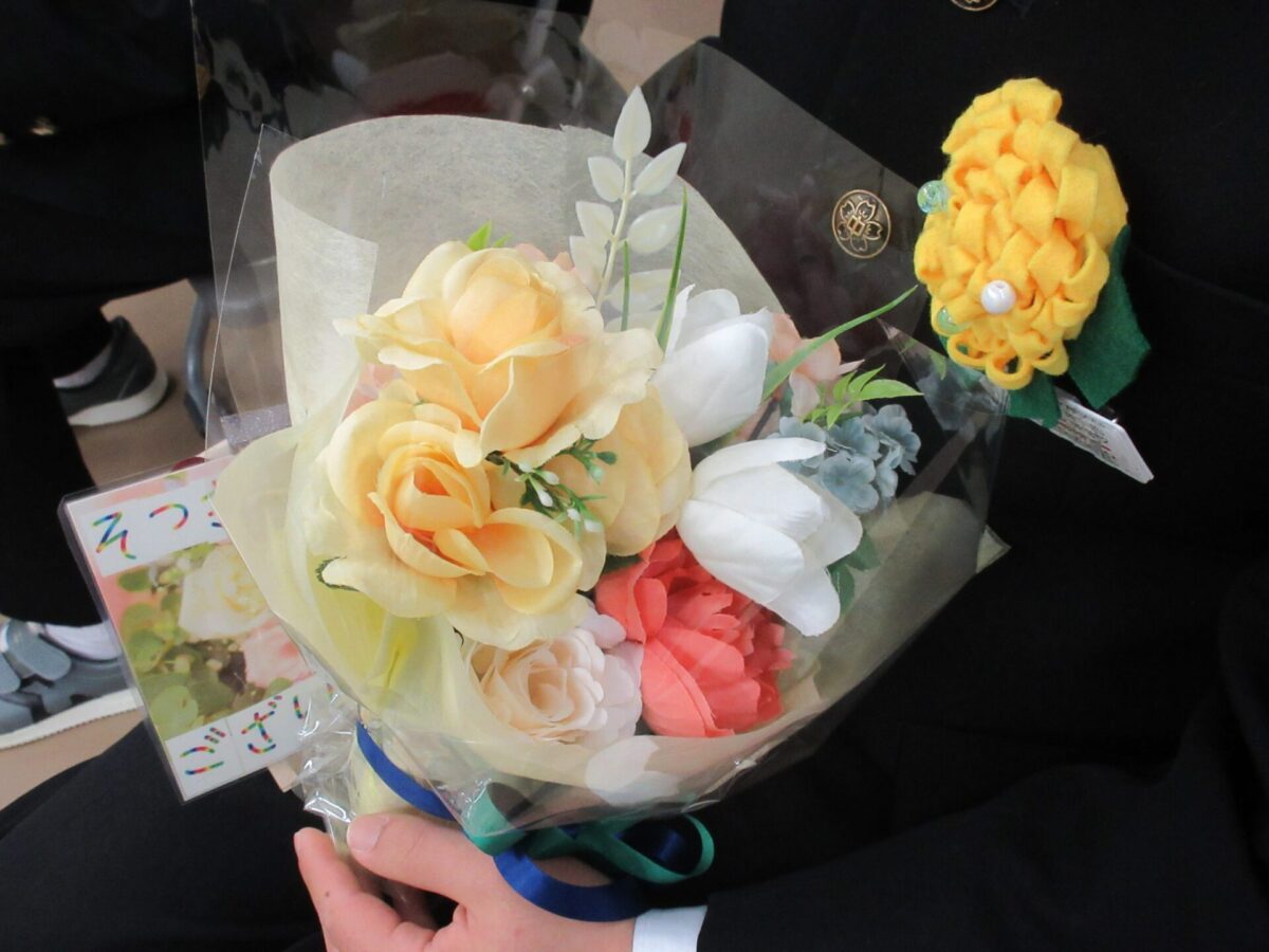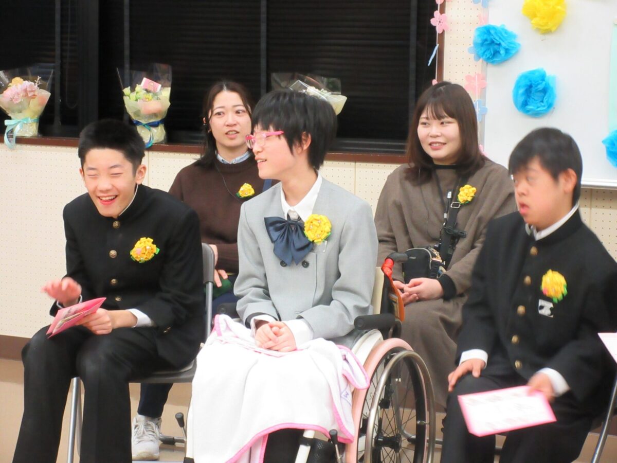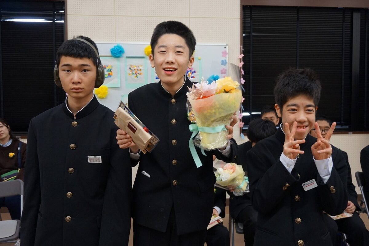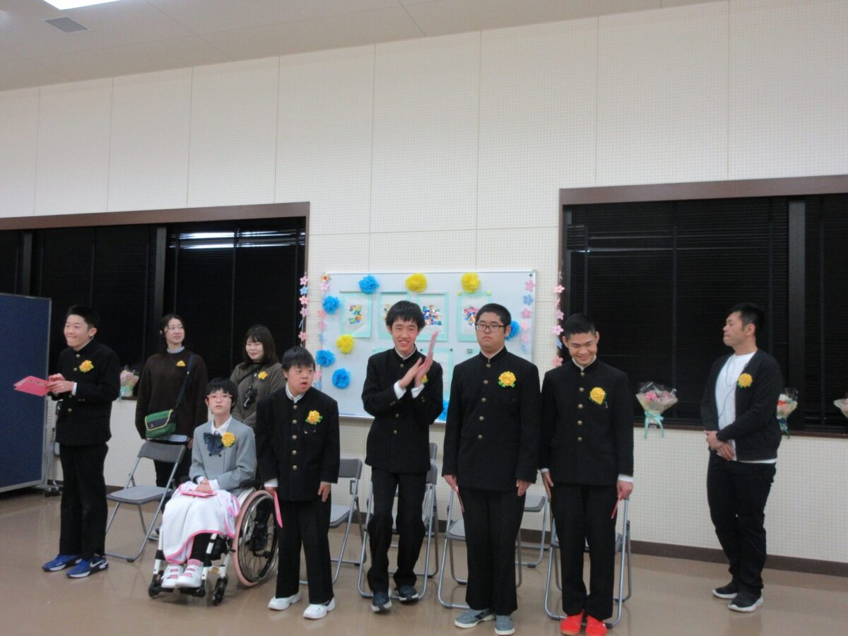 2月27日(金)、音楽室にて「3年生を送る会」を行いました。これまで、中学部を引っ張ってきてくれた3年生へ、在校生は心をこめて準備をしてきました。会の始まりには、全員でダンスを踊りました。3年生と踊ってきたダンス。思い入れのあるダンスソングで、なんと3曲も踊りました。また、在校生からは、3年生への感謝の気持ちを込めたフラワーアレンジメントやプレゼント、エールが贈られました。3年生からも後輩の背中を押してくれるような力強いエールとメッセージ、卒業記念品(リサイクルBOX)をいただきました。みんなの想いに、会場にいると胸が熱くなる場面もありました。本当にあたたかい、素晴らしい会となりました。