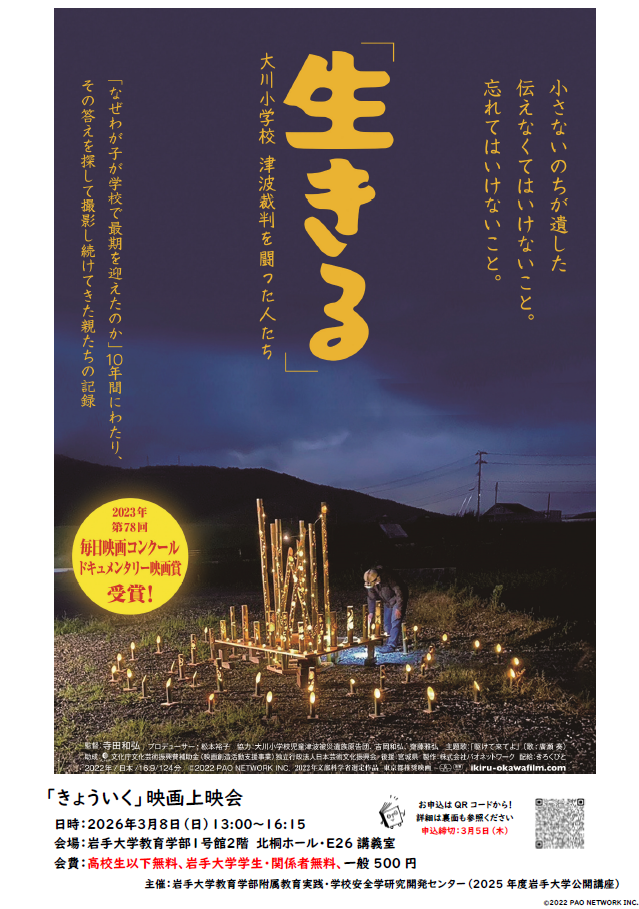 教育学部附属教育実践・安全学研究開発センターでは、「きょういく」映画上映会を開催いたします。