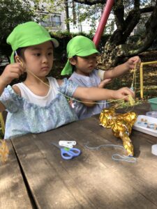 年中さんは、魔法のじゅうたんに乗って、魔法の森へ遊びに行きます。
